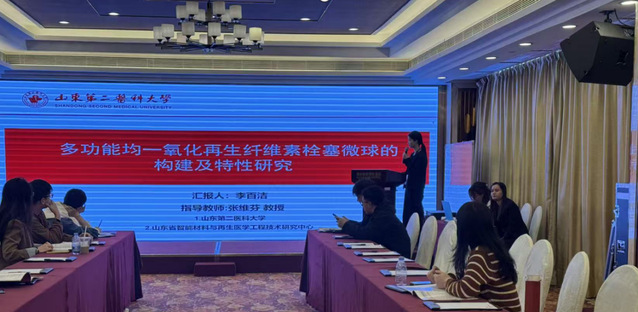 此外,该团队研究生章颖在“研究生学术新锐论坛”上,作了题为《依巴斯汀柔性脂质体微针的构建及药效研究》的口头汇报的墙报展示,并获得优秀墙报奖研究生李百洁在“研究生学术新锐论坛”上,《多功能均一氧化再生纤维素栓塞微球的构建及特性研究》为题做了口头汇报,并获得学术新锐奖。展示了团队在新材料的持续探索与阶段性进展,体现了团队扎实的研究基础和良好传承。
